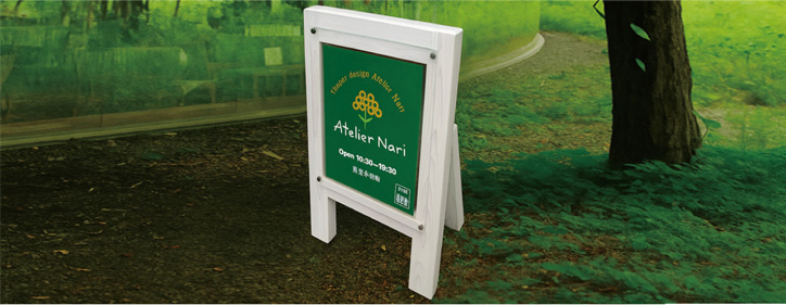 SAIは、天然パイン材で作るしっかりとした両面木製スタンド看板です。
